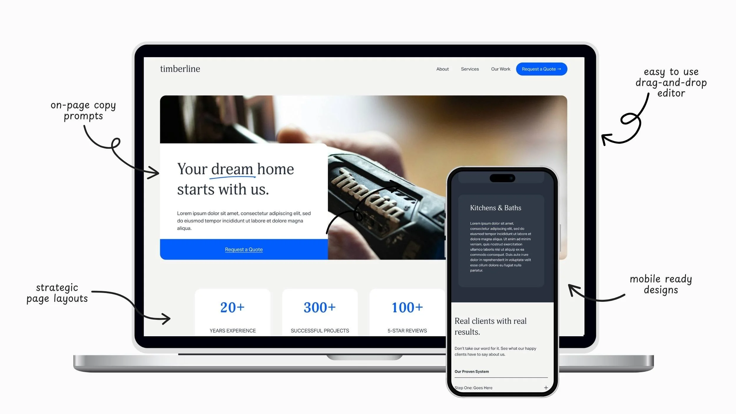 We've done the hard work so you don't have to. With our intuitive design and step-by-step guides, you can have your professional website up and running in hours, not weeks.